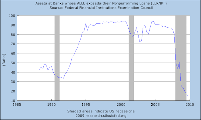 Because allowances for loan and lease losses (ALLL) are a direct hit to earnings, and because allowances are at ridiculously low levels, bank earnings (and capitalization ratios) are wildly over-stated.